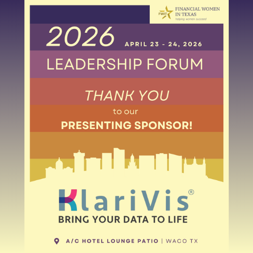 KlariVis is proud to be a featured sponsor of the Financial Women in Texas 2026 Leadership Forum! Connect with Kim Snyder and Meaghan Kincaid and learn how community banks are turning data into a competitive advantage.